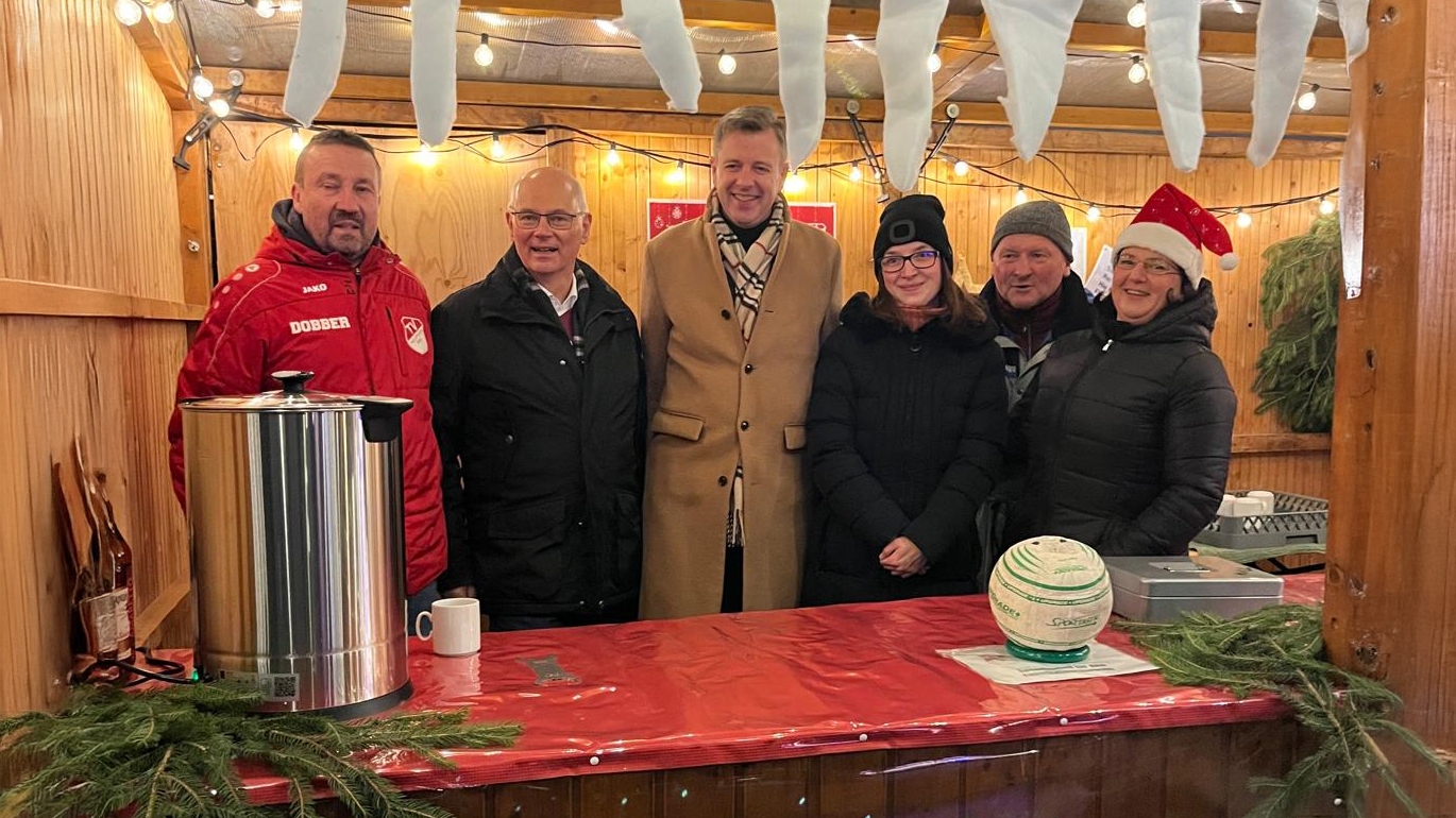 Bürgermeister Hans-Peter Baumann eröffnete mit dem Christkind und den Engelchen den Adventsmarkt und begrüßte die Gäste. Mit dem Bürgermeister traten Christkind Paula Nittke und die Engel Matilda Tröger, Marie Nittke und Nora Merz auf die Bühne – ihre Verse setzten den Ton des Tages.