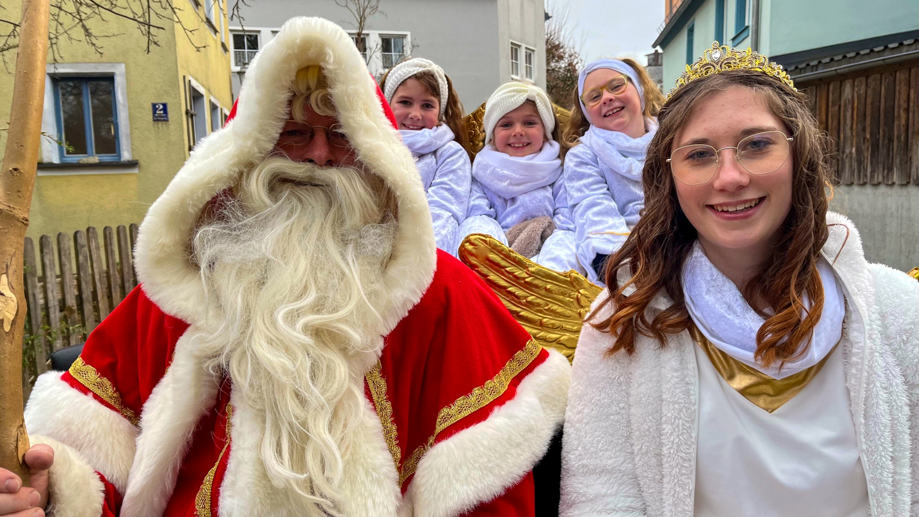 Ein besonders liebgewonnener Moment: Nikolaus Matthias Popp fuhr mit der Kutsche vor – abgeholt von Christkind und Engeln. Er kam nur ein paar Meter weit, da hatte sich schon eine fröhliche Traube von Kindern gebildet. Viele durften sich über eine kleine Überraschung aus dem Sack freuen – und über ein Foto obendrein.