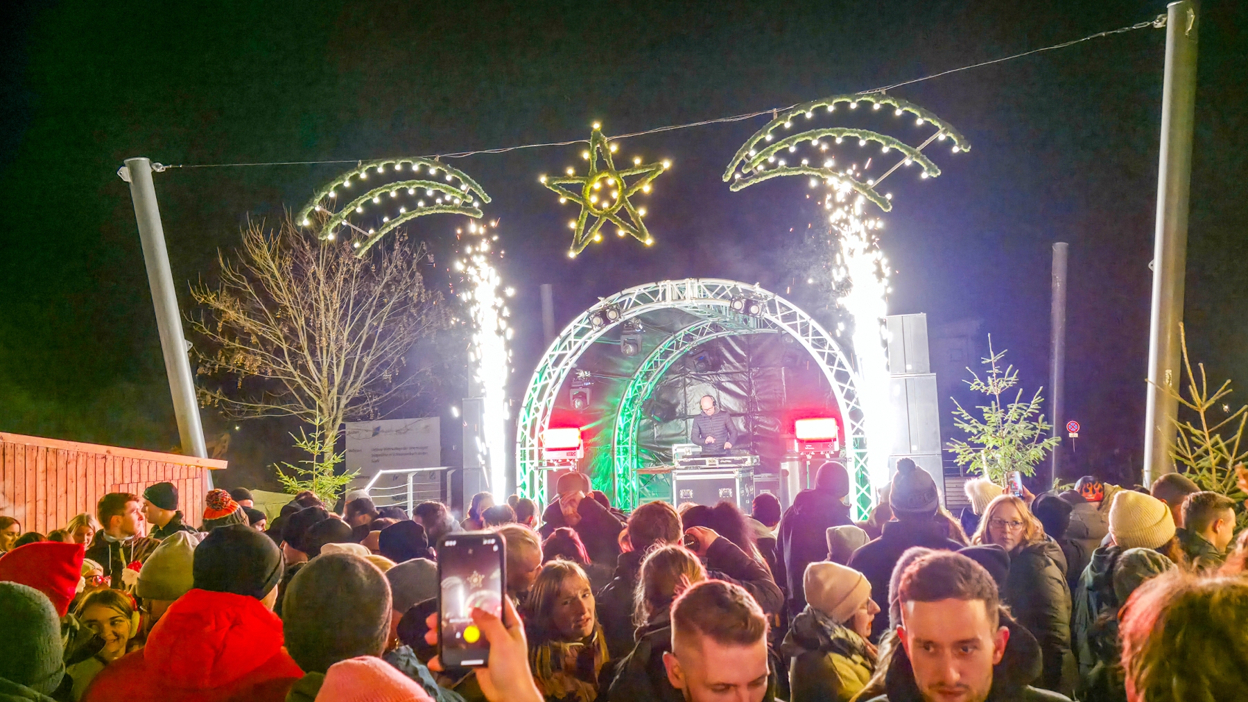 Bei trockenem, klarem Himmel füllte sich der Rathaushof schon früh. Zwischen Open-Air-Bar und beheiztem Skihütten-Pavillon brachte DJ E-MAN den Platz zum Beben – die Tanzfläche blieb bis Mitternacht dicht gefüllt, die Stimmung: herzlich, ausgelassen, vorweihnachtlich. Kulinarisch war für alle etwas dabei: Hot Aperol, Flammkuchen, Kartoffelsuppe, Pizza, allerlei vom Fisch, Deftiges vom Grill und Süßes fürs Finale. Ein Auftakt, der Lust auf den Sonntag machte.