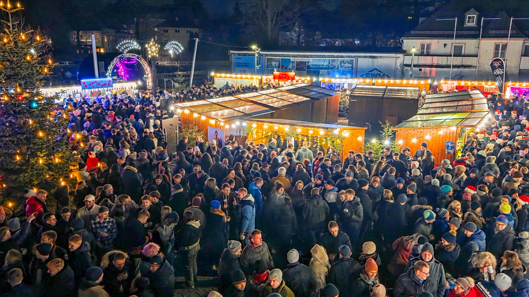 Bei trockenem, klarem Himmel füllte sich der Rathaushof schon früh. Zwischen Open-Air-Bar und beheiztem Skihütten-Pavillon brachte DJ E-MAN den Platz zum Beben – die Tanzfläche blieb bis Mitternacht dicht gefüllt, die Stimmung: herzlich, ausgelassen, vorweihnachtlich. Kulinarisch war für alle etwas dabei: Hot Aperol, Flammkuchen, Kartoffelsuppe, Pizza, allerlei vom Fisch, Deftiges vom Grill und Süßes fürs Finale. Ein Auftakt, der Lust auf den Sonntag machte.