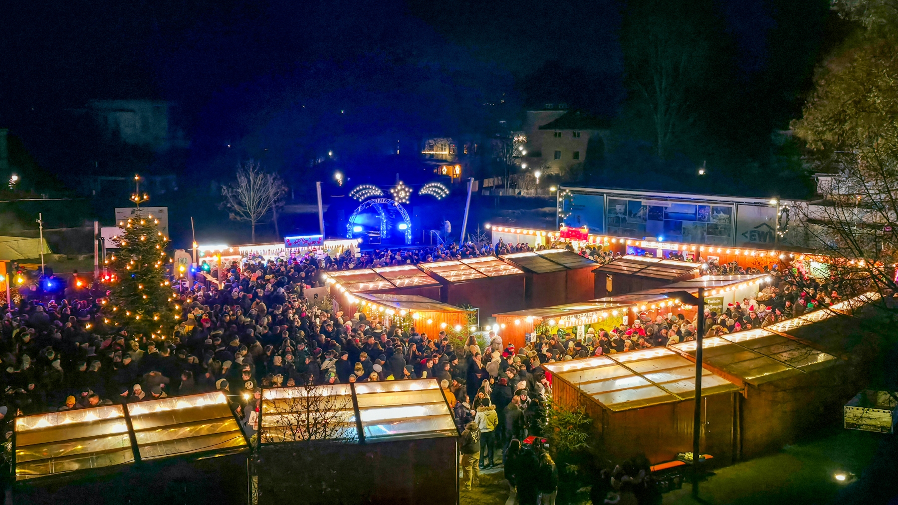 Bei trockenem, klarem Himmel füllte sich der Rathaushof schon früh. Zwischen Open-Air-Bar und beheiztem Skihütten-Pavillon brachte DJ E-MAN den Platz zum Beben – die Tanzfläche blieb bis Mitternacht dicht gefüllt, die Stimmung: herzlich, ausgelassen, vorweihnachtlich. Kulinarisch war für alle etwas dabei: Hot Aperol, Flammkuchen, Kartoffelsuppe, Pizza, allerlei vom Fisch, Deftiges vom Grill und Süßes fürs Finale. Ein Auftakt, der Lust auf den Sonntag machte.