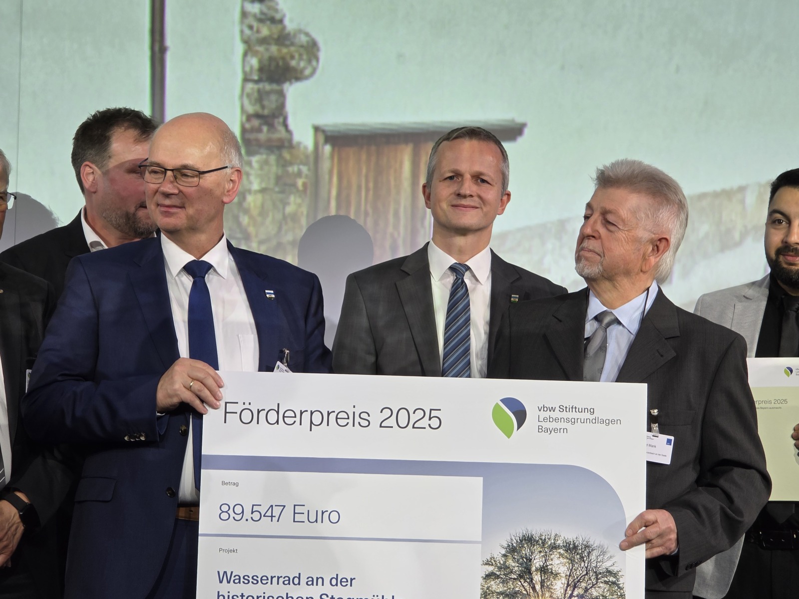 Unter Beteiligung des Planers Köhler für den Wasserspielplatz wurden seitens des Bauamts die Antragsunterlagen gefertigt und das Förderprojekt bei der vbw-Stiftung eingereicht. Kurz vor der Bürgerversammlung erreichte dann die Stadt die Einladung zur Förderpreisverleihung für den 8. Dezember in München.
