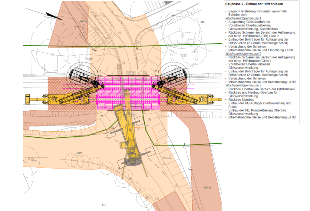 Baustelleneinrichtung um Einbau der Hilfsbrücken