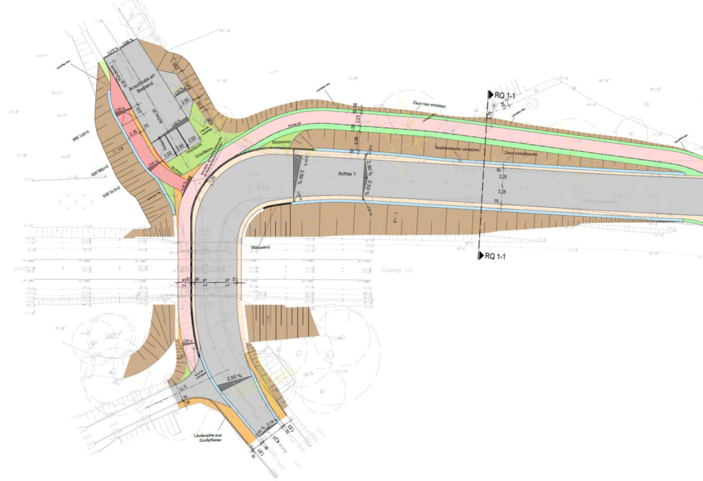 Durch die Tieferlegung der Straße unter der Brücke um etwa 1,60 Meter muss die Schlachthofstraße bis zur Einfahrt in die Stadtwerke neu ausgebaut werden. Parallel zur Fahrbahn entsteht ein abgesetzter Gehweg bis zum bestehenden Gehweg in Höhe der Einfahrt zu den Stadtwerken.