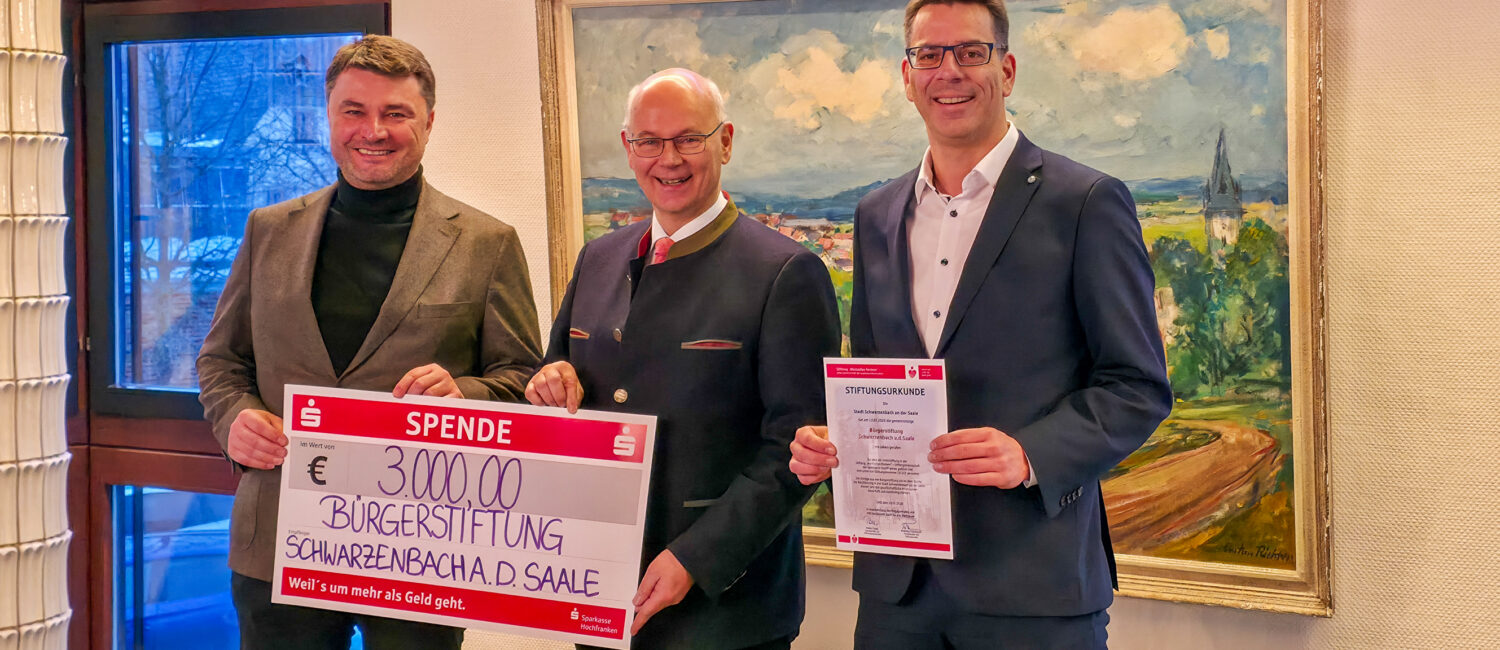Schwarzenbach an der Saale ist damit eine der ersten Städte in der Region, die unter dem Dach der Stiftergemeinschaft „Wertvolles Fördern“ der Sparkasse Hochfranken eine Bürgerstiftung gründet und von einer besonderen Aktion der Sparkasse im Jahr ihres 200. Geburtstags profitiert: Aktuell unterstützt die Sparkasse jede Gründung einer Bürgerstiftung mit einem Betrag von 3.000 Euro. Seitens der Stadt Schwarzenbach an der Saale wurden 20.000 Euro eingebracht.
