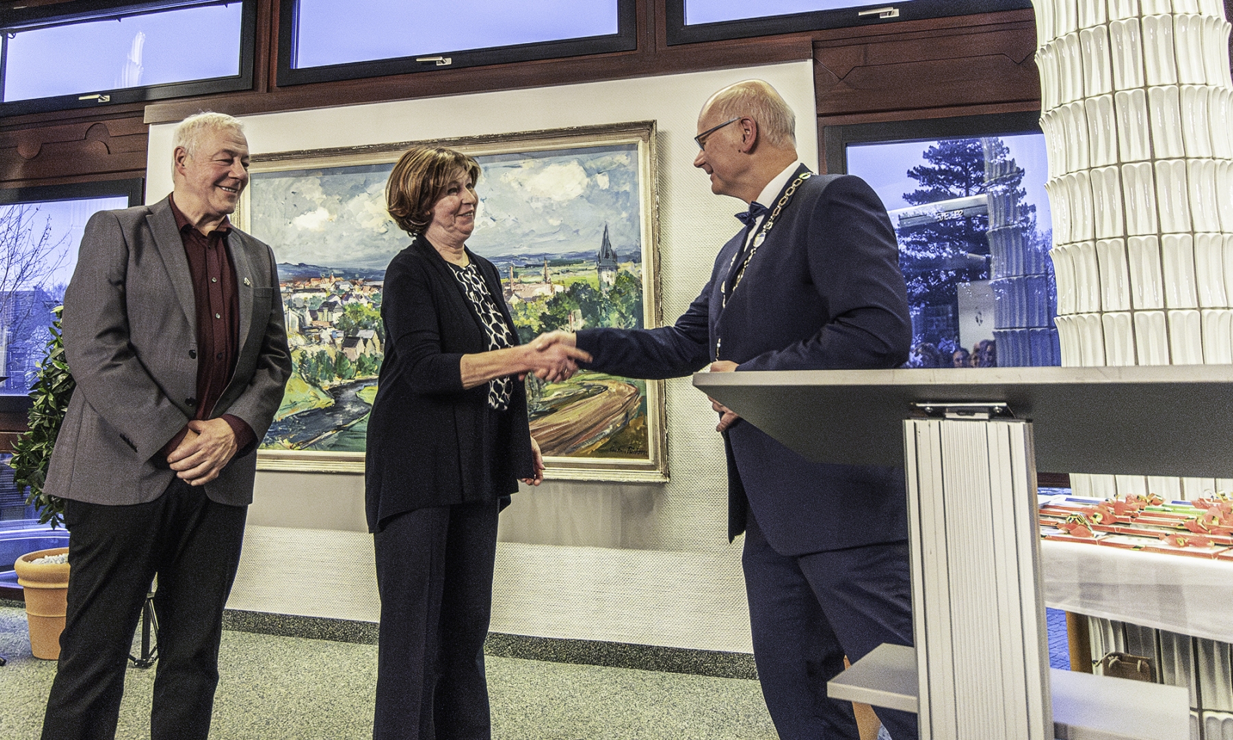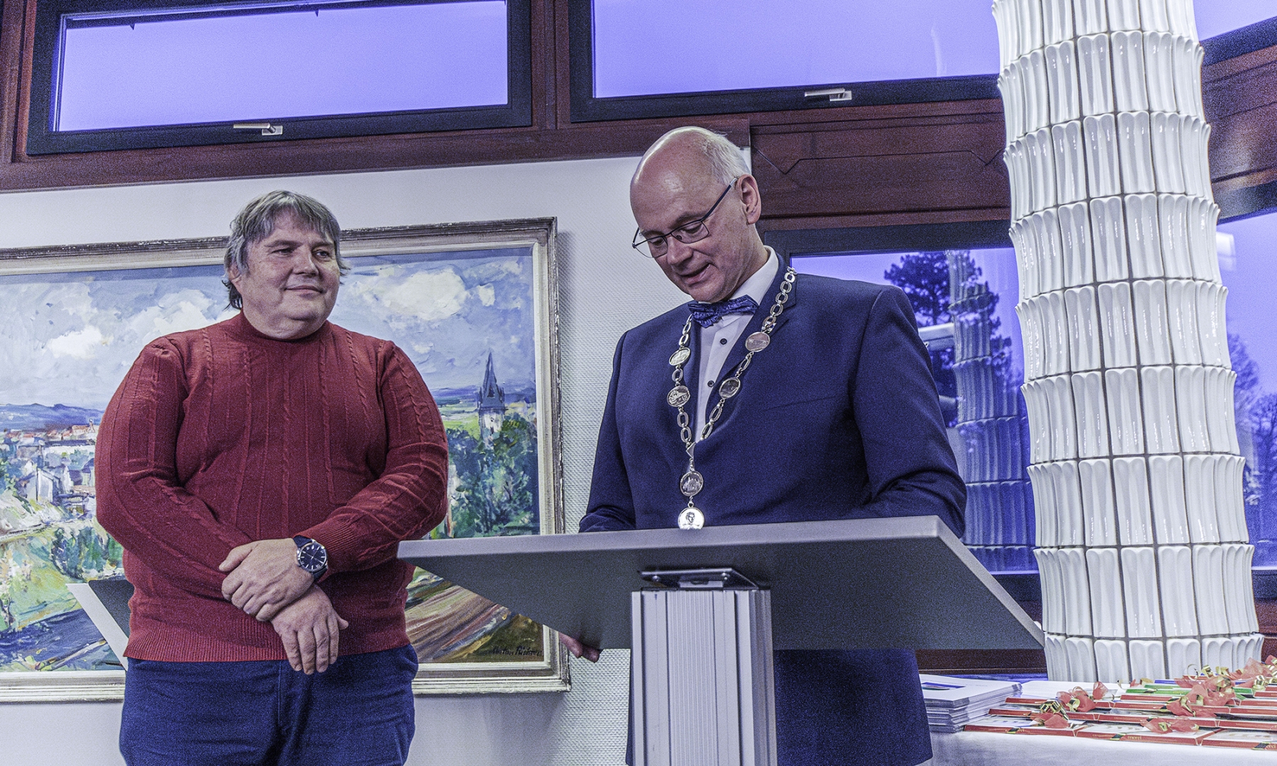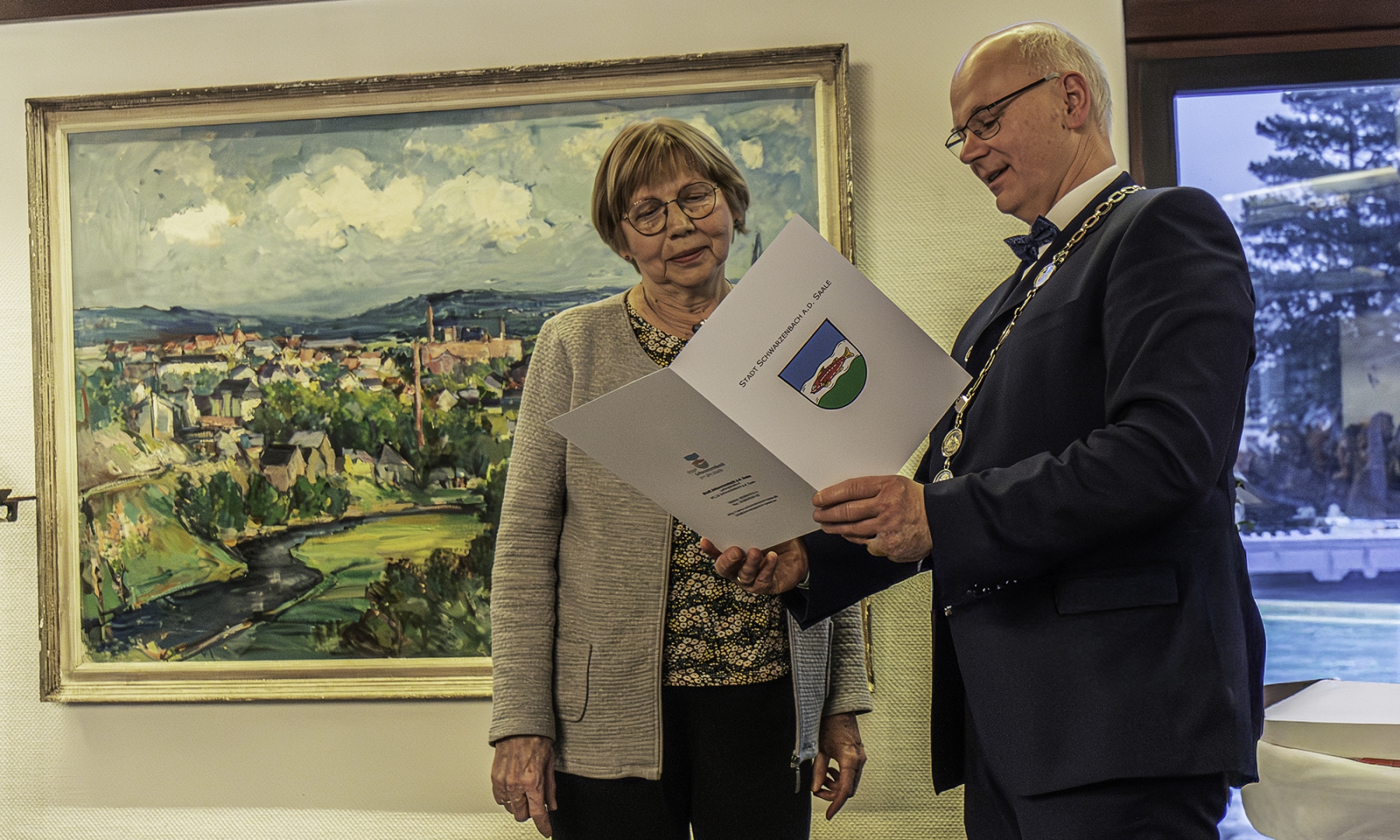 Im kulturellen Bereich würdigte die Stadt Margit Hohenberger und Peter Schmidt. Beide engagieren sich seit vielen Jahren für die Bildende Kunst in Schwarzenbach – sei es durch Ausstellungen, den Kunstmarkt oder die städtische Malerausstellung zum Wiesenfest.