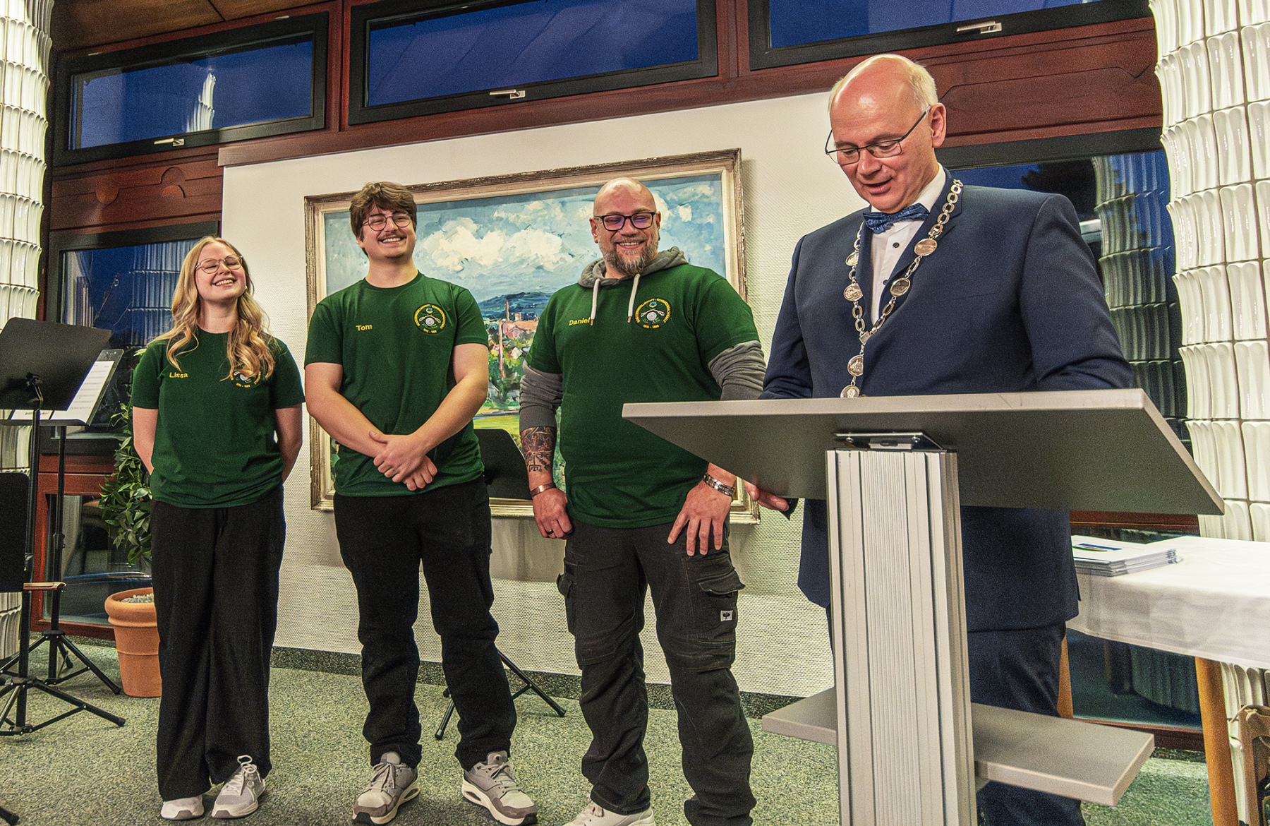 Für außergewöhnlich langes ehrenamtliches Wirken in der Turnerschaft 1851 Schwarzenbach an der Saale ehrte die Stadt Gisela Wulf, Peter Wulf und Thomas Frisch – drei Persönlichkeiten, die zusammen für über 150 Jahre Engagement in verantwortlichen Vereinsfunktionen stehen.