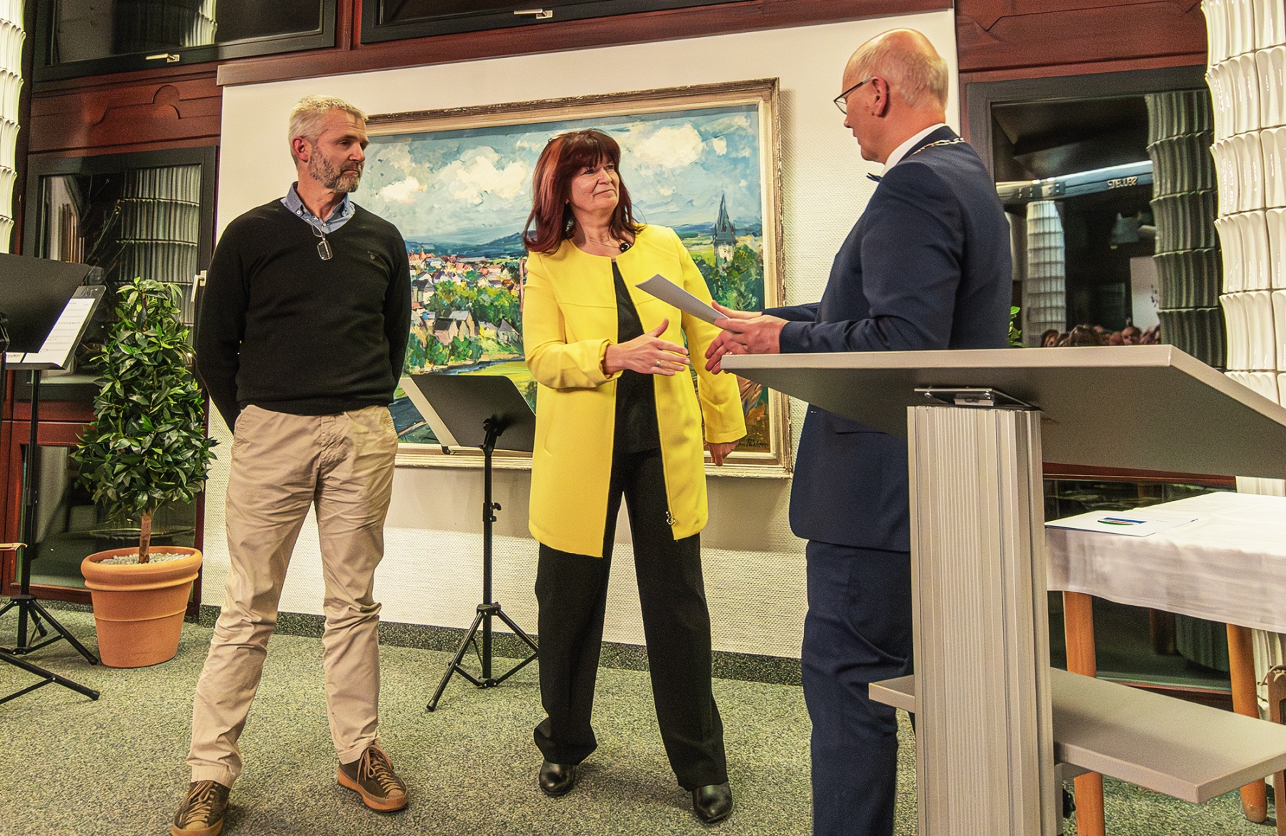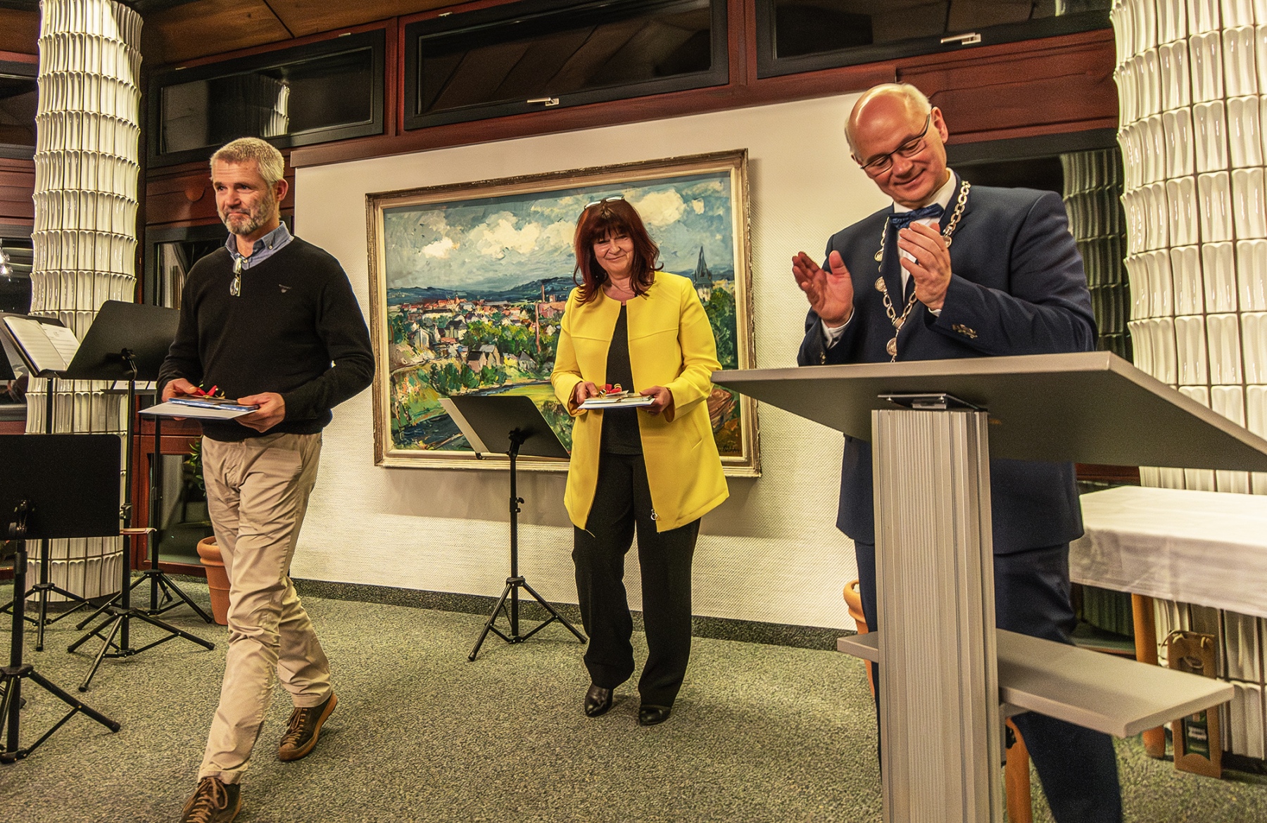 Im kulturellen Bereich würdigte die Stadt Margit Hohenberger und Peter Schmidt. Beide engagieren sich seit vielen Jahren für die Bildende Kunst in Schwarzenbach – sei es durch Ausstellungen, den Kunstmarkt oder die städtische Malerausstellung zum Wiesenfest.