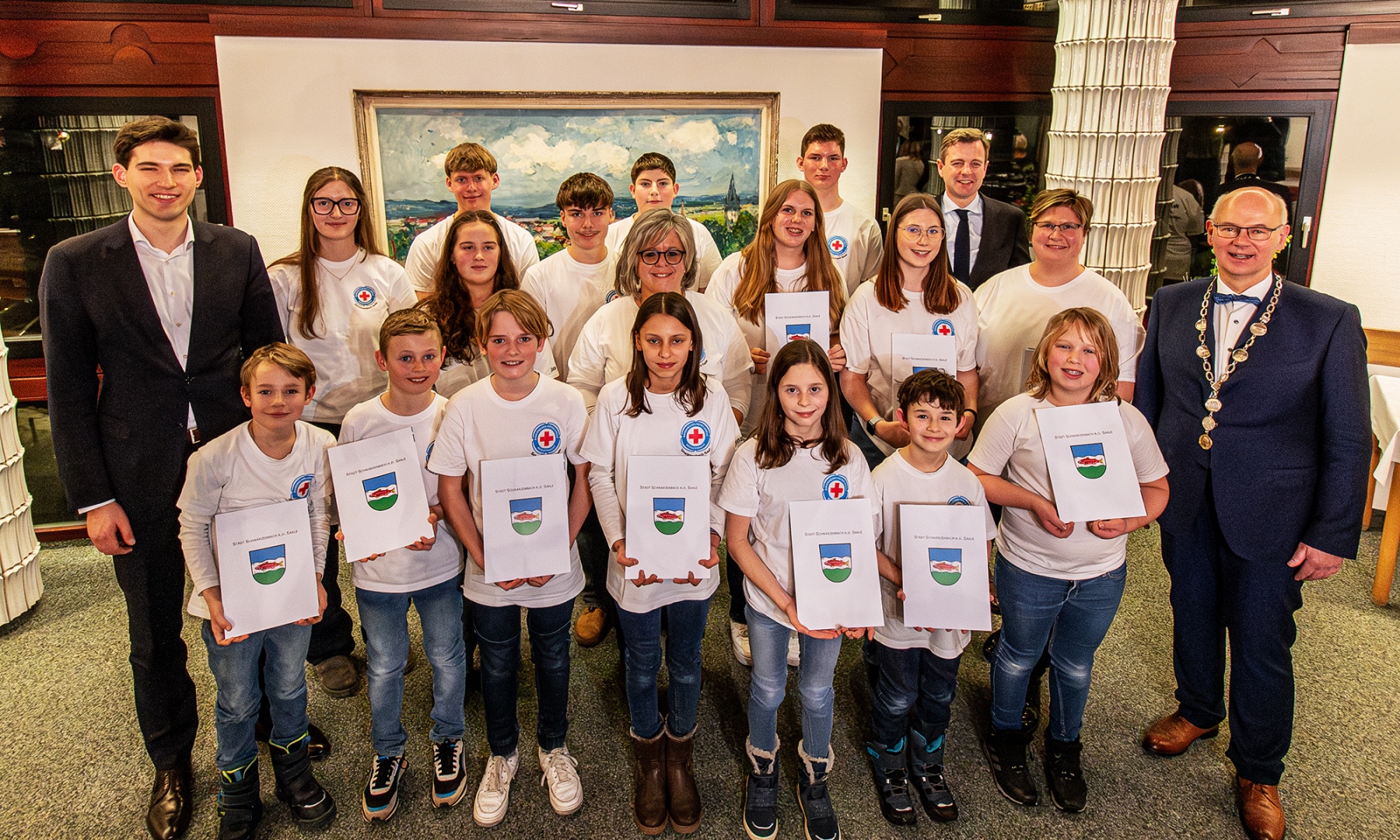 Für ihre Erfolge beim Bayerischen Landesentscheid wurden mehrere Mannschaften der Wasserwacht Schwarzenbach ausgezeichnet – sowohl aus der Stufe 1 als auch aus der Stufe 3 – gemeinsam mit ihren Betreuerinnen und Betreuern.
