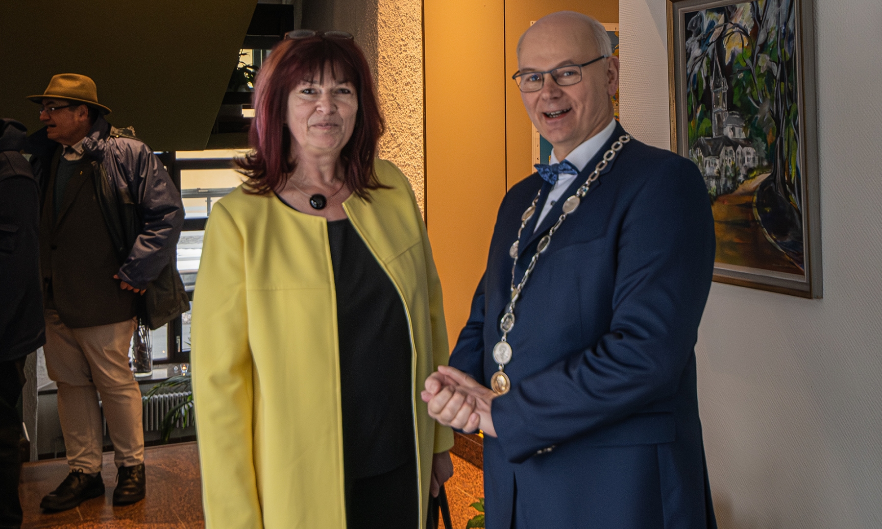 Im kulturellen Bereich würdigte die Stadt Margit Hohenberger und Peter Schmidt. Beide engagieren sich seit vielen Jahren für die Bildende Kunst in Schwarzenbach – sei es durch Ausstellungen, den Kunstmarkt oder die städtische Malerausstellung zum Wiesenfest.