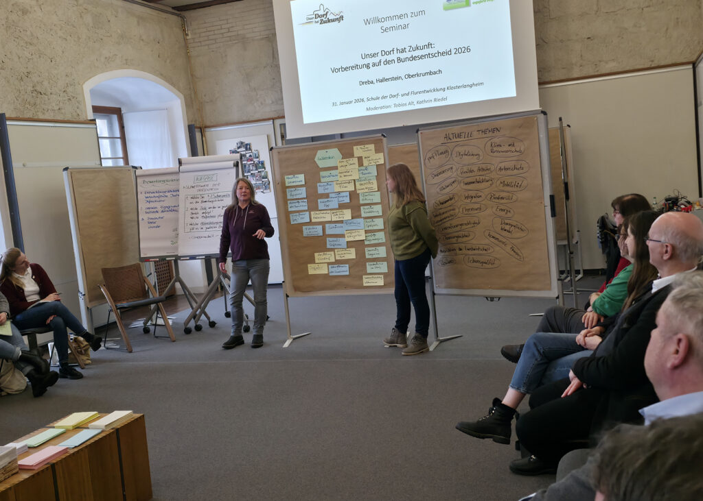 Am Samstag, den 31. Januar 2026, war das Organisationsteam aus Hallerstein bereits zum dritten Mal zu Gast in Klosterlangheim. In der Schule der Dorf- und Flurentwicklung fand ein ganztägiges Seminar zur Vorbereitung auf den Bundesentscheid von „Unser Dorf hat Zukunft“ statt, an dem Hallerstein als bayerisches Golddorf teilnimmt.